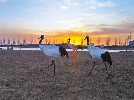 冬日的張掖國(guó)家濕地公園丹頂鶴、黑天鵝、朗德鵝、斑頭雁等沐浴在清晨的陽光下。這里良好的生態(tài)環(huán)境吸引了眾多候鳥棲息。通訊員 成 林