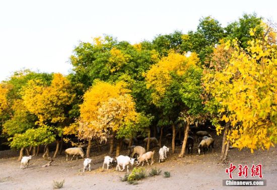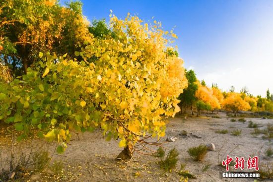 圖為胡楊秋色吸引不少游客和敦煌市民前來賞秋。 王斌銀 攝
