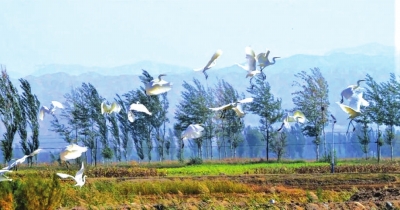 秋日的白銀天高云淡,風(fēng)輕氣爽。隨著一年的稻田收割,成群的白鷺和野鴨等鳥類棲息在景泰縣五佛鄉(xiāng)成片的稻田、魚塘附近,或低空飛翔,或嬉戲覓食,形成一幅自然和諧的美麗畫卷。