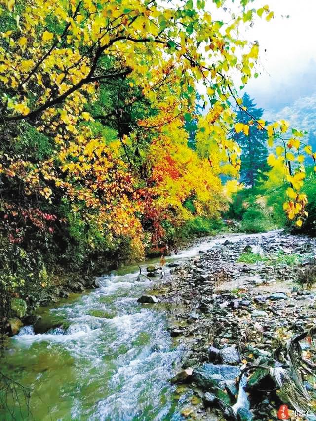 各種顏色的樹葉交織在一起,紅的、黃的、綠的,波濤一樣奔涌、撞擊乃至匯集,就像一幅丹青妙手精心暈染、調色的畫卷。