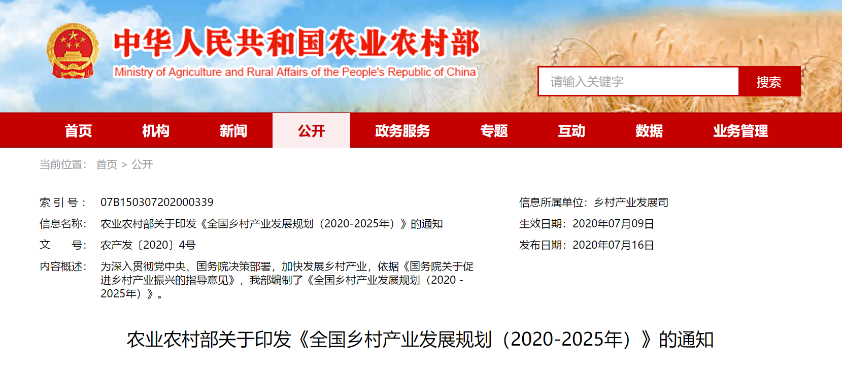 全國(guó)鄉(xiāng)村產(chǎn)業(yè)發(fā)展規(guī)劃