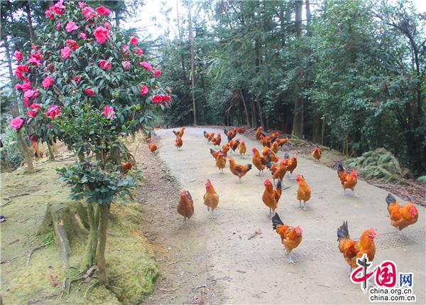 茶花具有“唯有山茶殊耐久,獨(dú)能深月占春風(fēng)”的傲梅風(fēng)骨,又有“花繁艷紅,深?yuàn)Z曉霞”的凌牡丹之鮮艷,因此自古以來(lái)就是極富盛名的木本花卉,在唐宋兩朝達(dá)到了登峰造極之境,直到十七世紀(jì)引入歐洲后,造成轟動(dòng),也因此獲得“世界名花”的美名。九龍街道牛街居委會(huì)小寨土雞生態(tài)產(chǎn)業(yè)園嬌艷的茶花給人一種神圣感,同時(shí)被賦予了一種原始的信仰:山茶是春天的神木,是春天的圣樹(shù)。置身九龍小寨土雞生態(tài)產(chǎn)業(yè)園,來(lái)一場(chǎng)與森林的浪漫邂逅,恍如仙境。園里有枇杷林、櫻桃林、楊梅林、梨樹(shù)林、紅豆杉林、柏樹(shù)林、椿樹(shù)林、油桃林、核桃林、灌木林以及草莓園、蔬菜園、山茶花園、荷花園,樹(shù)下是一群群羽毛鮮亮的土雞悠閑地覓食,好一幅田園風(fēng)景畫(huà)!