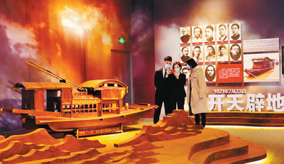 圖為觀眾在博物館參觀中共一大會(huì)址嘉興南湖紅船模型。 記者 賀勇 攝