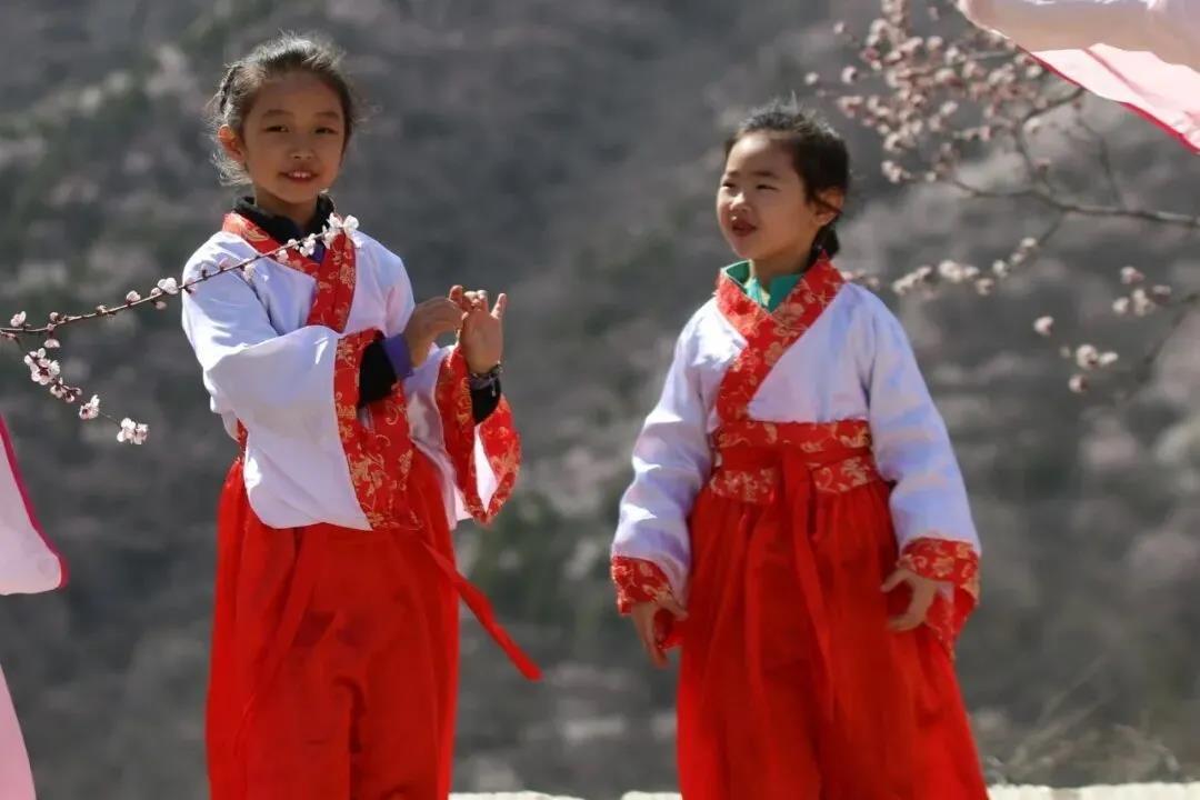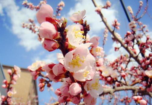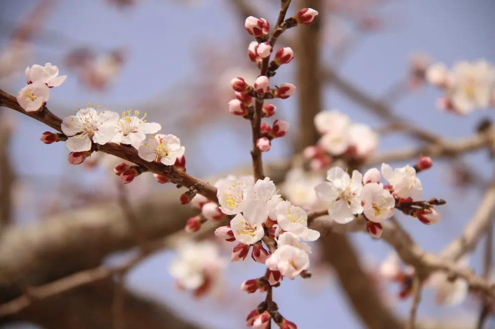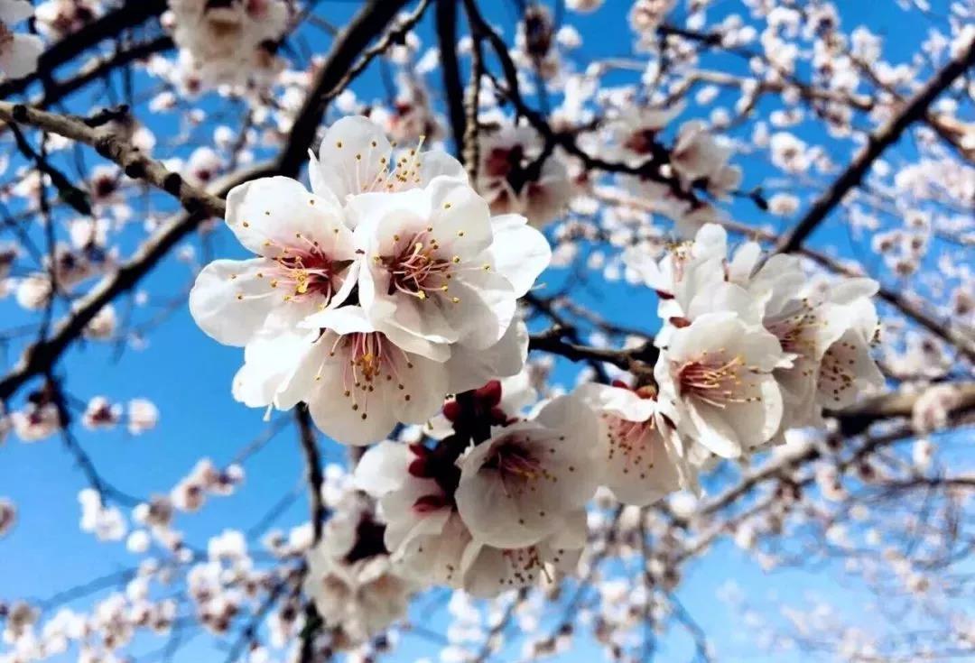 沐浴在明媚春光下,紅的、粉的、白的……競(jìng)相綻放,遠(yuǎn)遠(yuǎn)望去,一幅十里杏花畫(huà)卷徐徐展開(kāi)。