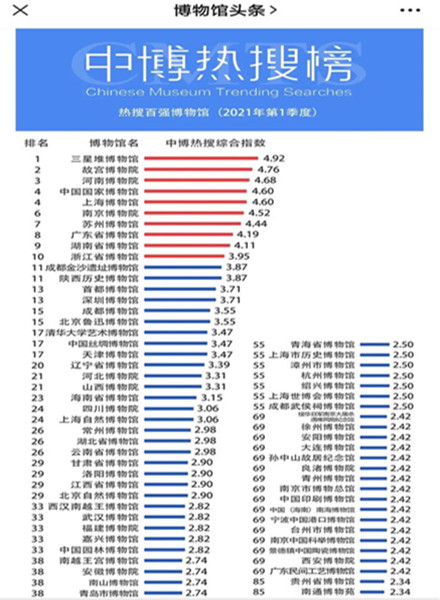 原標(biāo)題:一季度全國(guó)博物館熱搜榜發(fā)布 三星堆首登榜首