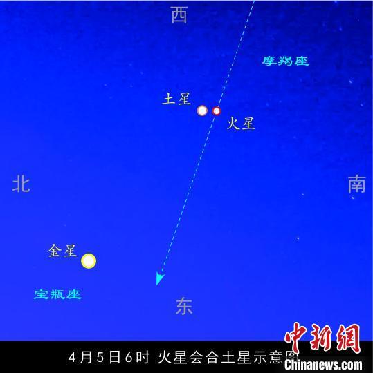 火星土星近距離相會,何時觀測最佳?各地最佳觀測時間是日出前70分鐘,觀察方位在東方偏南的低空。屆時,金星是啟明星,十分明亮,視亮度達(dá)到負(fù)4.4星等。在金星的西南面(右上方),可找到土星和火星。4月5日,廣州日出時間是6時16分,即廣州在5時06分前后觀測最佳。如果借助雙筒望遠(yuǎn)鏡觀察,效果更好。(郭軍 李建基)