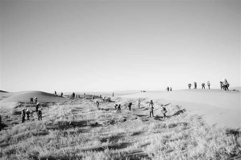 雖然天氣陰沉,氣溫在零攝氏度左右,但郭萬(wàn)剛心情很不錯(cuò)。這種天氣很可能下雨,下雨意味著林場(chǎng)半個(gè)月前栽種的檸條、梭梭成活率會(huì)大大提高。