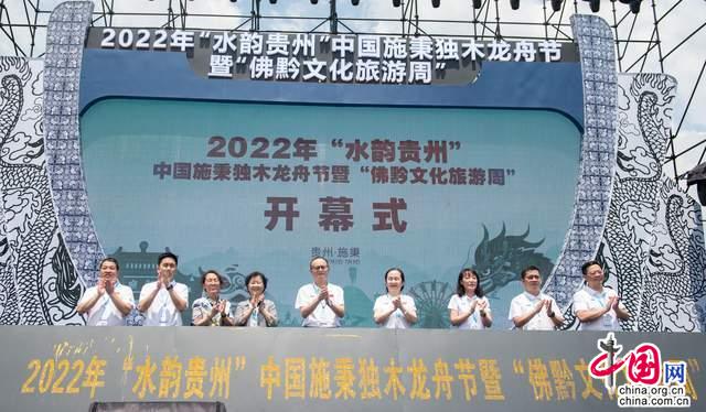 7月2日,由貴州省體育局、黔東南州人民政府主辦,佛山市文化廣電旅游體育局、黔東南州文體廣電旅游局、黔東南州民宗委、施秉縣人民政府、貴州省體育產(chǎn)業(yè)發(fā)展有限公司承辦的2022年“水韻貴州”中國(guó)施秉獨(dú)木龍舟節(jié)暨“佛黔文化旅游周”在施秉縣水舞云臺(tái)音樂(lè)噴泉廣場(chǎng)舉行。