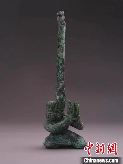 第一件扭頭跪坐人像出土?xí)r臉部布滿了銅銹,加之盤發(fā)沖天的造型,考古工作者并未意識到這是一件青銅人像。但這一疑慮很快隨著第二件扭頭跪坐人像的出土而被打破。