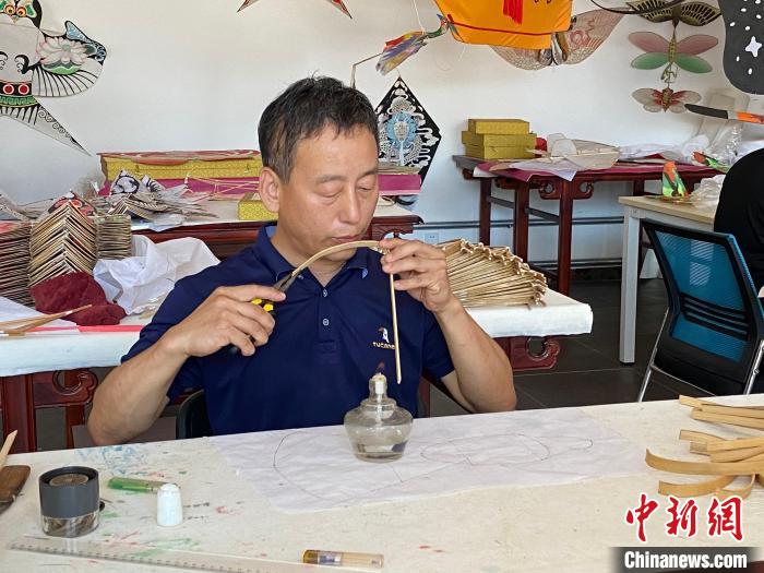 出生在風箏世家的趙艷芳說,為了教大家制作風箏,自己先學習風箏制作的四門基礎(chǔ)功課——扎、糊、繪、放,其中扎風箏骨架是最難的,主要難在竹條的烤制,因為一不小心就會烤糊。