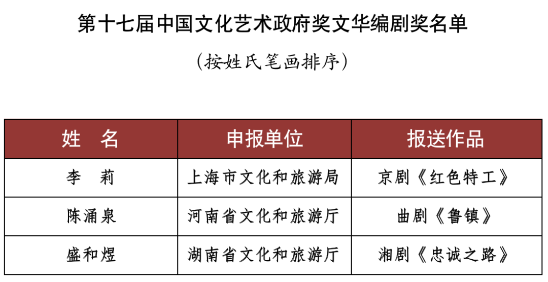 9月15日,文化和旅游部對外公布了《第十七屆文華獎獲獎名單》。舞劇《五星出東方》(北京市文化和旅游局選送)、話劇《塞罕長歌》(河北省文化和旅游廳選送)、舞蹈詩劇《只此青綠》--舞繪《千里江山圖》(中國東方演藝集團(tuán)有限公司選送)等15個作品獲得第十七屆中國文化藝術(shù)政府獎文華大獎。