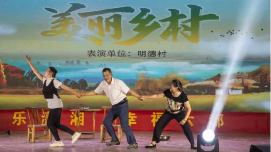 明德村打造“最美瀟湘文化陣地”美名遠(yuǎn)揚,為明德村“文化服務(wù)走出去”打下了堅實基礎(chǔ)。村里的文藝團(tuán)隊除了義務(wù)服務(wù)外,平時還經(jīng)常應(yīng)邀到其他外村表演,獲取點額外收入。村支兩委乘勢而上,把文化優(yōu)勢變成產(chǎn)業(yè)優(yōu)勢,把文化產(chǎn)業(yè)變?yōu)榇迕裰赂坏?ldquo;法寶”與鄉(xiāng)村振興的“加速器”。