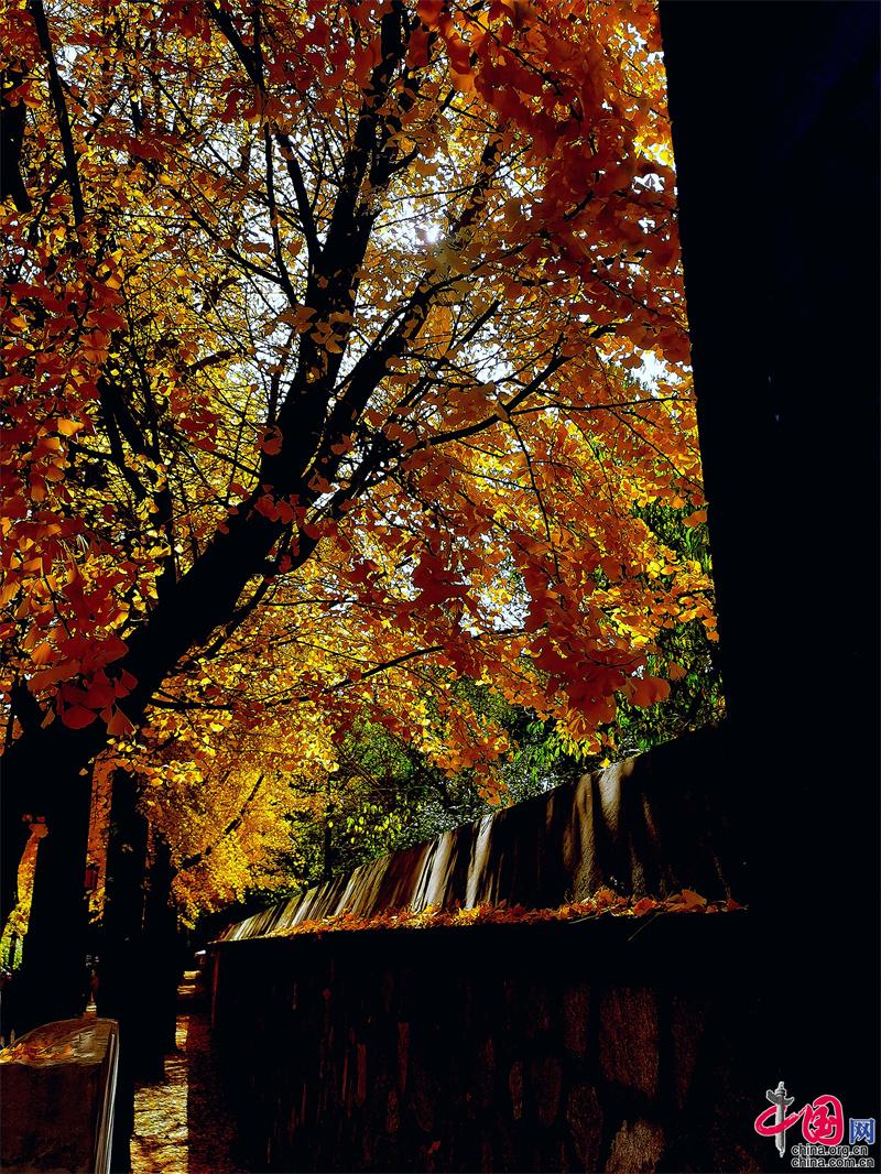 而圓明園的秋色,同樣不落秋之美。黃葉與殘垣相襯,透露出特有的滄桑與悲涼。它美得那么寂寞,那么孤獨(dú)。只有在銀杏大道上,才能聽到喧鬧之中,那熙熙攘攘的歡呼之聲。