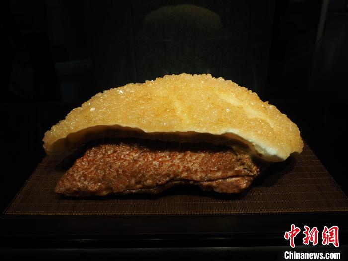 圖為現(xiàn)場(chǎng)的一塊奇石展品形貌如同泛著油光的豬肉。李嬌陽 攝