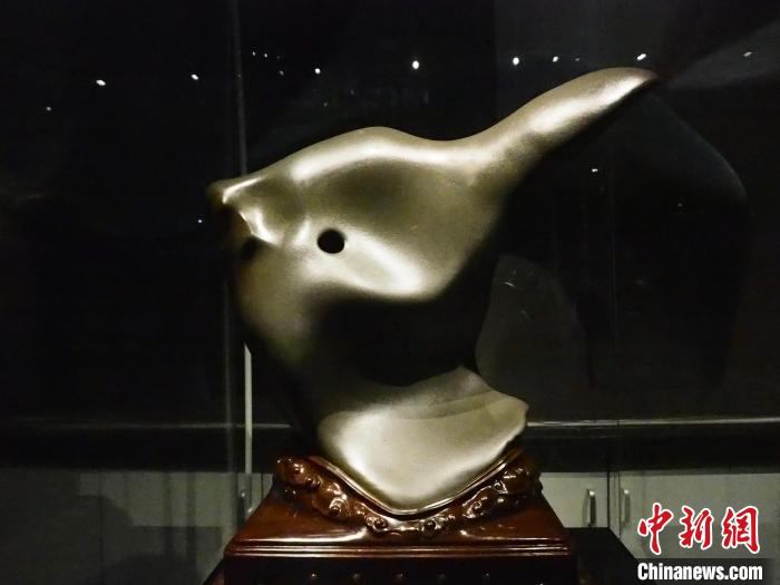 圖為現(xiàn)場(chǎng)的一塊奇石展品形如瓷瓶。李嬌陽 攝