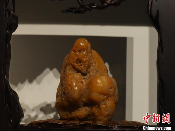 圖為現(xiàn)場(chǎng)展出的一塊奇石形似和尚。李嬌陽 攝