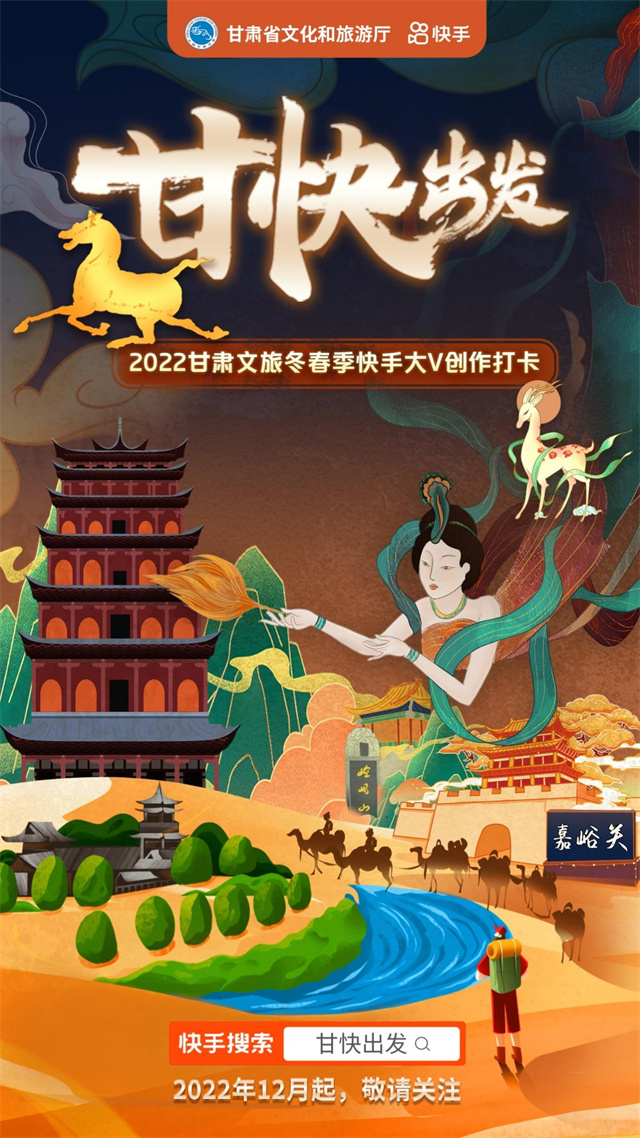 為加快推進全省文旅行業(yè)復工復產(chǎn),激活冬春旅游市場,甘肅省文旅廳聯(lián)合快手科技舉辦的“甘快出發(fā)”2022甘肅文旅冬春季快手大V創(chuàng)作活動于12月16日啟動。本次活動整合快手文旅達人創(chuàng)作力量,10名來自全國的快手粉絲平均超過100萬的大V組建成“甘快出發(fā)”2022甘肅文旅冬春季快手大V創(chuàng)作采風團,于12月16日—31日分組分批次落地甘肅10城,以“狂想甘肅十大必體驗目的地”為品牌創(chuàng)作方向,進行甘肅文旅深度采風和短視頻內(nèi)容制作,為網(wǎng)民呈現(xiàn)多元、細致、獨特的甘肅角度,打造獨有的“視頻甘肅”名片。