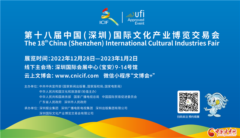 本屆文博會由中宣部、文旅部、商務部、國家廣播電視總局、中國國際貿(mào)易促進委員會、廣東省政府和深圳市政府聯(lián)合主辦,國家廣電總局輪值主辦,深圳報業(yè)集團、深圳廣播電影電視集團、深圳出版集團有限公司、深圳國際文化產(chǎn)業(yè)博覽交易會有限公司承辦。線下主會場將于12月28日至2023年1月2日在深圳國際會展中心9-14號館舉辦,12月29日起正式向公眾開放。云上文博會平臺設(shè)在文博會官網(wǎng)(www.cnicif.com)、微信小程序“文博會+”,與線下主會場展覽時間同步,全天24小時開放。此外,本屆文博會還設(shè)立了65家分會場,分別設(shè)立在深圳市各區(qū)(新區(qū)),目前各分會場已陸續(xù)啟動展覽展示與交易活動。
