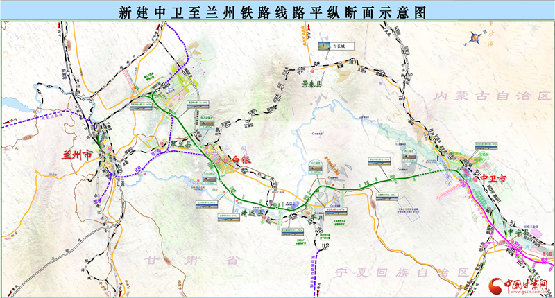 銀蘭高鐵中蘭段(甘肅段)正線全長173.727km,雙線,設(shè)計速度為250公里/小時,總投資255.51億元,工期5年。全線特大橋42座、大橋38座、中橋9座、涵洞256座、隧道15座。2016年11月14日,國家發(fā)改委批復(fù)新建中衛(wèi)至蘭州鐵路可行性的研究報告。