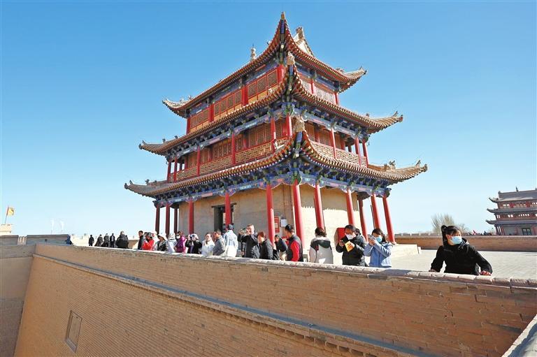 3月4日,游客在嘉峪關(guān)關(guān)城景區(qū)參觀游覽。春暖復(fù)蘇,甘肅省不少古絲綢之路節(jié)點(diǎn)城市喜迎旅游開(kāi)門(mén)紅。在擁有世界文化遺產(chǎn)的甘肅省嘉峪關(guān)市,歷史文化古跡、現(xiàn)代主題樂(lè)園、夜市等景點(diǎn),都吸引了不少游客前來(lái)游覽體驗(yàn)。今年以來(lái),當(dāng)?shù)赝瞥鑫穆孟M(fèi)券、景點(diǎn)優(yōu)惠套票、獎(jiǎng)補(bǔ)扶持政策等一系列措施,提振文旅消費(fèi)市場(chǎng)信心,助推絲路文旅產(chǎn)業(yè)強(qiáng)勁復(fù)蘇。