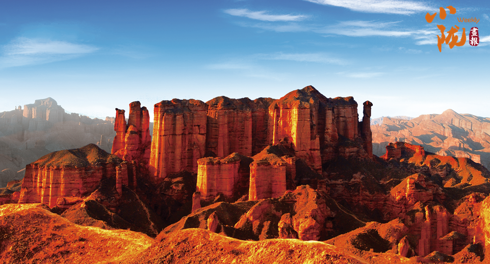 冰溝丹霞以砂巖地貌遺跡景觀為主體,是國內窗欞狀宮殿發(fā)育最好、規(guī)模最大的地質地貌遺跡,是“窗欞狀宮殿式丹霞”的命名地。
