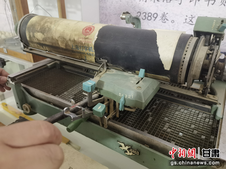 近日,甘肅省白銀市靖遠縣大壩村民俗博物館吸引游人參觀。圖為老式打字機。劉玉桃 攝