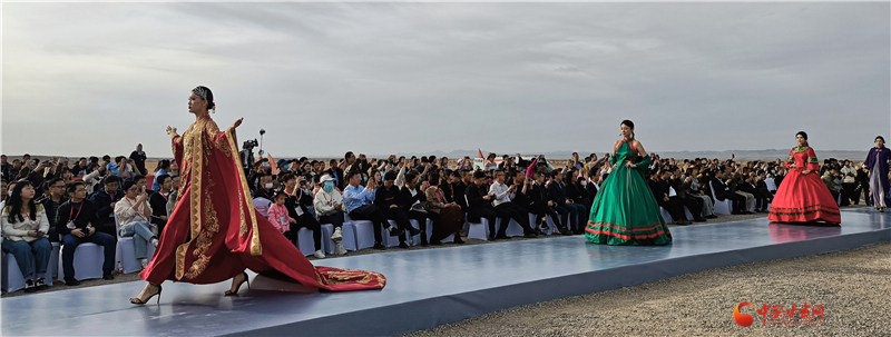 走秀的模特也表示,在玉門關(guān)下走秀很特別,行走時有清風(fēng)在面頰拂過,特別有感覺,大地舞臺厚重寬廣更有時尚感。
