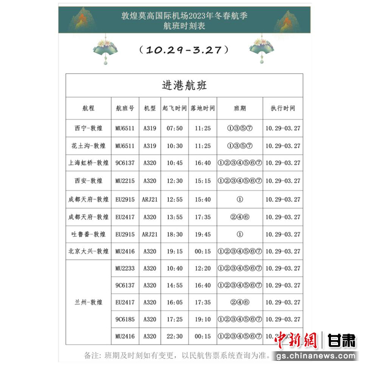 中新網(wǎng)甘肅新聞10月25日電 秋風(fēng)已至,秋意漸濃,敦煌莫高國際機(jī)場加密8條國內(nèi)新航季線。10月29日起,全新開航,盡情享受秋日浪漫,一起奔赴一場美好的秋色之旅。(完)