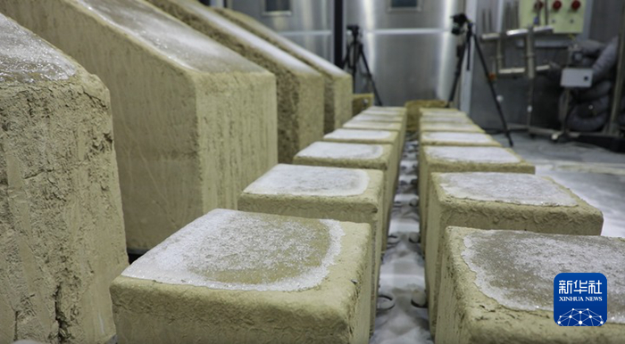 這是9月11日在敦煌研究院國家古代壁畫與土遺址保護(hù)多場耦合環(huán)境模擬實驗室冬季倉拍攝的正在試驗中的土遺址監(jiān)測樣品。新華社記者 張智敏 攝