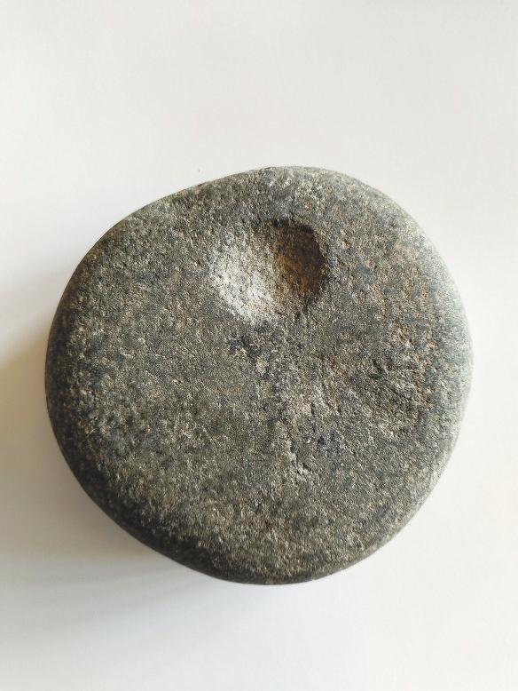 齊家文化的“盤狀石器”除“敲砸器”以外,還有一點比較特殊,其雙面分別琢制有日紋和月紋。目前所知,這類“盤狀石器”只在齊家文化遺存中出現(xiàn),是齊家文化石器的特有器型,石質(zhì)大多為礫石、河礫石。這種齊家文化特有的琢紋盤狀石器,學界尚未有統(tǒng)一命名,通常所見為:“圓形見手窩敲砸器”“刻符石”“刻符石器”。民間俗稱為:“練功石”“日月石”“星月石器”等。