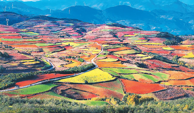 冬日艷陽(yáng)下,云南省昆明市東川區(qū)紅土地鎮(zhèn)獨(dú)特的紅土地景觀,吸引各地游客前來(lái),也帶動(dòng)周?chē)傩赵鍪铡?/p>
