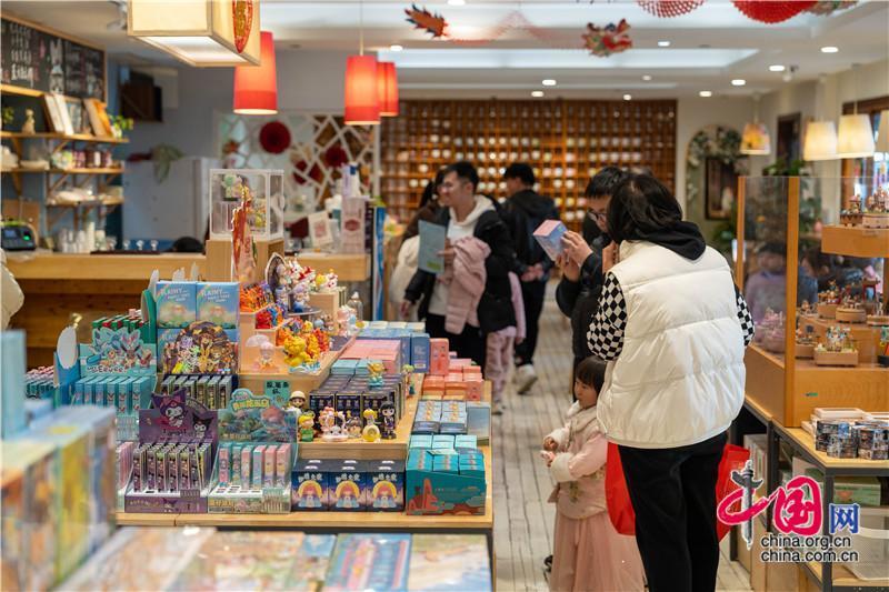姑蘇繁華間,是江南新卷。繡娘絲綢、周禮、江南贊、鄭師傅等文創(chuàng)國(guó)潮、江南非遺品牌店“龍”重入駐,家家入得“國(guó)貨大拜年”鏡頭。