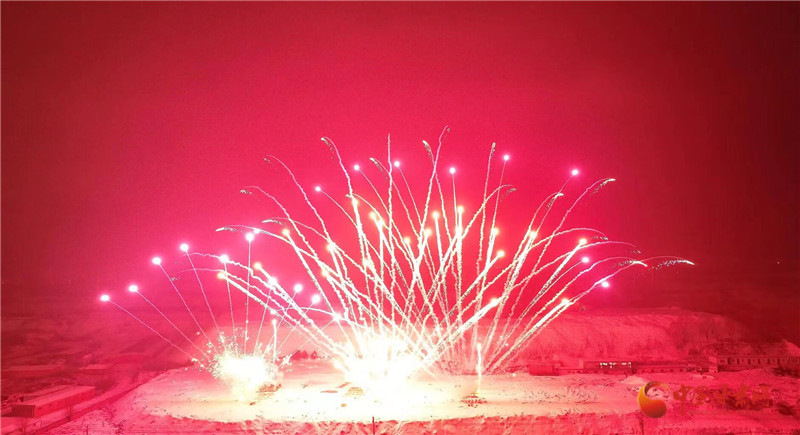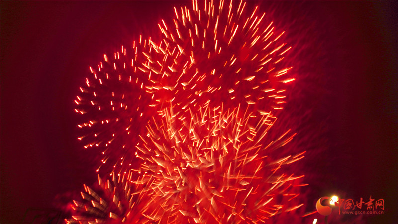 以焰火為筆,以星空作畫。晚8時許,焰火在夜幕中徐徐點亮,一朵朵、一束束焰火騰空而起,直沖云霄、綻放出耀眼的光芒。洶涌澎湃的銀河瀑布如金似玉從天庭倒掛,飛流而下,層層疊疊。依次從地面升起的各種禮花,如明珠,似繁星在空中閃爍,綻放出一幅幅絢麗壯觀、色彩繽紛的美麗畫卷。璀璨絢爛的煙花與小城的夜景、群眾的歡聲笑語、相機(jī)的快門聲交相輝映,大家都沉浸于濃濃“年味”和新春喜悅中。