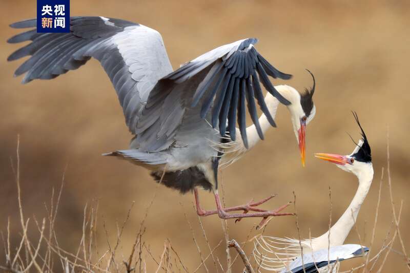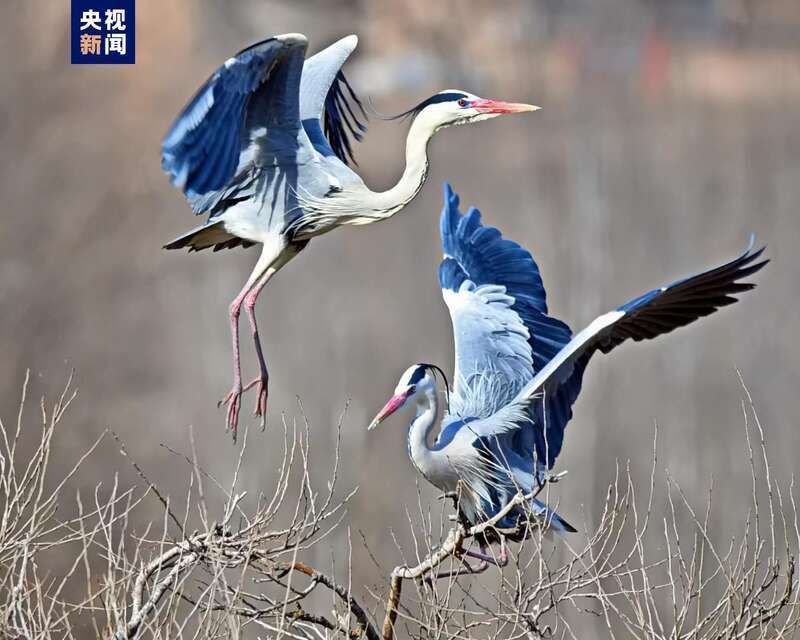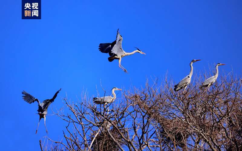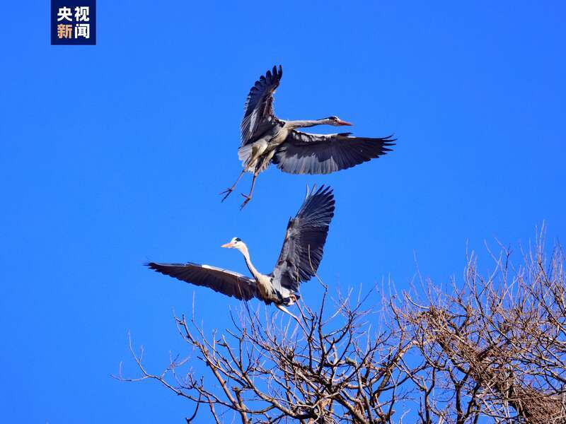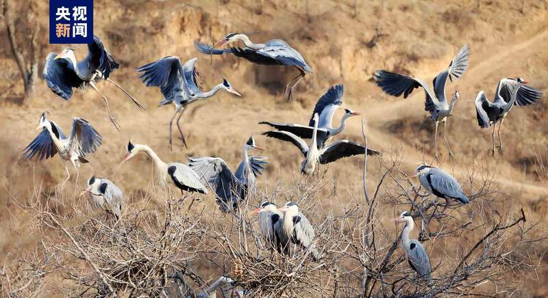 原標題:蒼鷺如約飛來子午嶺 翩躚起舞繁衍生息