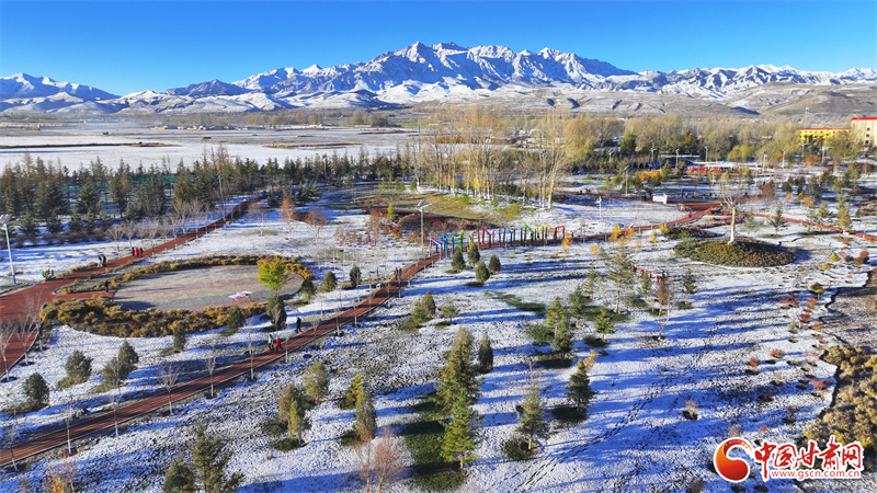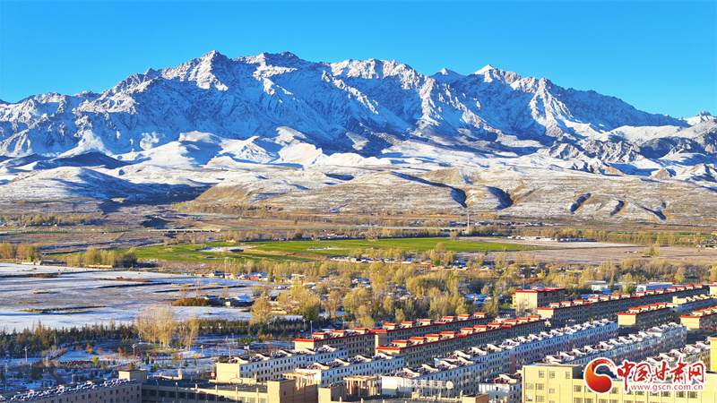 10月22日,雪后初晴的張掖市民樂縣,連綿起伏的祁連山被皚皚白雪覆蓋,整個縣城一片銀裝素裹,在晨曦的照射下,呈現(xiàn)出一幅多姿多彩、生態(tài)和諧的美麗畫卷。
