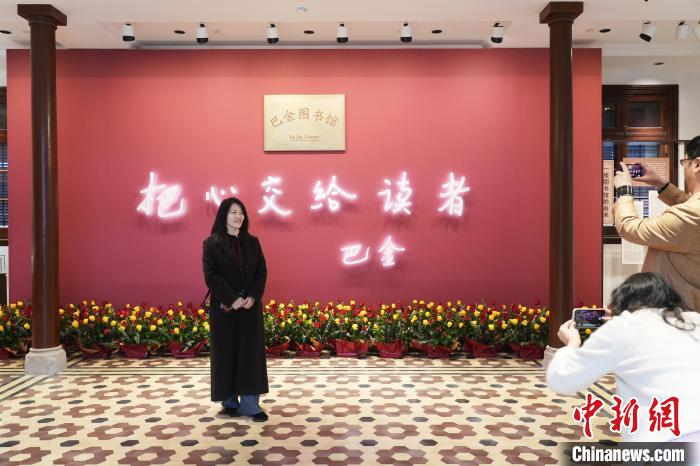 11月25日,巴金先生誕辰120周年,巴金圖書館在上海揭幕,實(shí)現(xiàn)了巴老生前想要?jiǎng)?chuàng)辦一座圖書館的心愿。圖為觀眾在巴金圖書館留影。中新社記者 張亨偉 攝