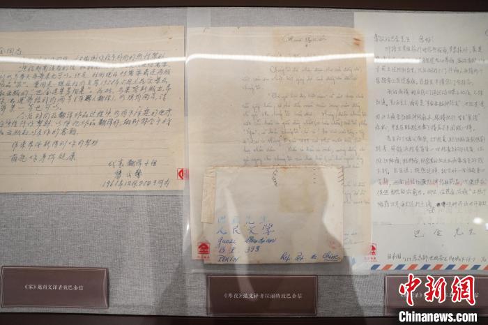 圖為巴金與各國(guó)翻譯者的書信展示。中新社記者 張亨偉 攝