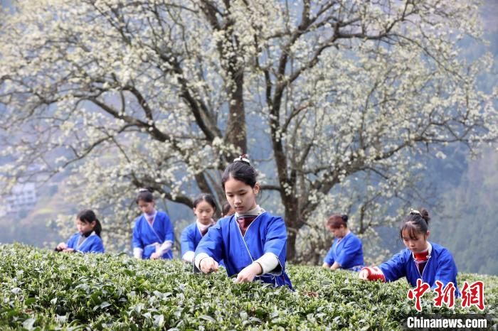 3月16日,廣西三江侗族自治縣八江鎮(zhèn)歸令村六更屯種植的千樹梨花迎春綻放,與青翠茶園、特色民居相映成趣,構(gòu)成一幅如詩(shī)如畫的春日畫卷。當(dāng)?shù)卮迕窦坝慰图娂娗皝?lái)采茶賞花、“打卡”拍照,享受春日美好時(shí)光。圖為村民在采春茶。龔普康 攝