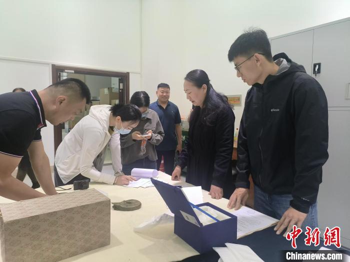 (資料圖)圖為“出差”文物正在點(diǎn)交。巴林右旗博物館 供圖