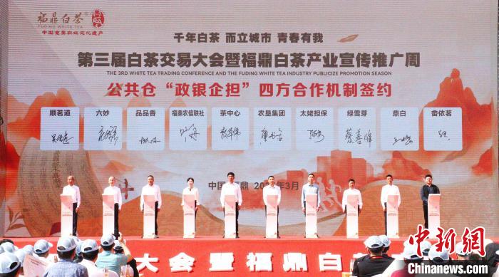 福鼎白茶公共倉“政銀企擔(dān)”四方合作機(jī)制簽約儀式。 林榕生 攝
