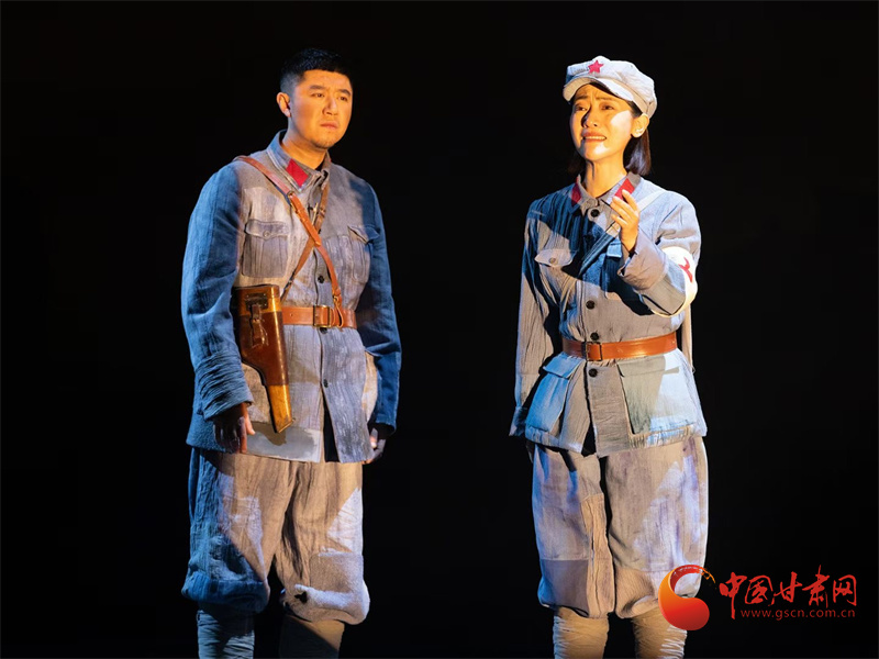 演出當(dāng)晚,舞臺(tái)上的燈光、道具與演員的精湛表演完美融合。逼真的場景布置,瞬間將觀眾帶回到1935年紅軍長征到達(dá)哈達(dá)鋪的那段波瀾壯闊的歲月。演員們?nèi)硇耐度耄總€(gè)人物都被演繹得淋漓盡致,憑借對(duì)角色深入研究與情感投入,讓觀眾看到了鮮活生動(dòng)的革命先輩。
