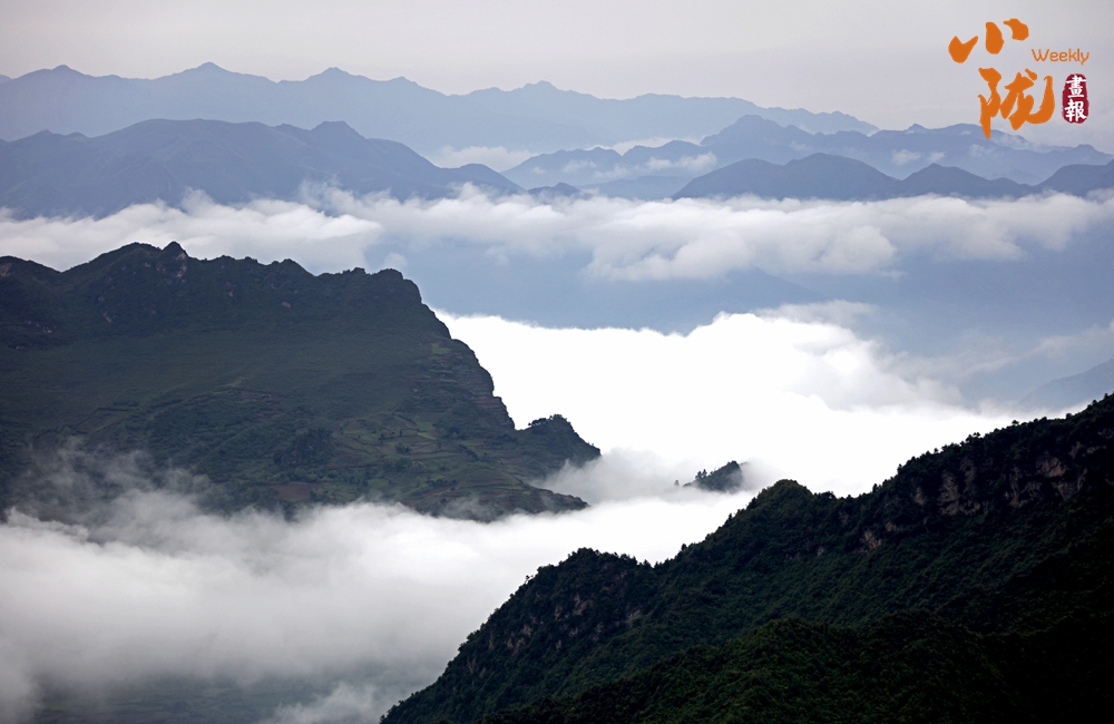 大雨過后,波瀾壯闊的云海層層疊疊,猶如萬馬奔騰,時而風平浪靜,浩如煙海;時而沒過山間,猶如涌動的潮水;時而悄悄褪去,猶如飄動的面紗,宛若人間仙境。