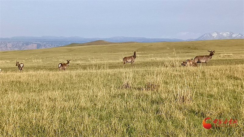 初夏的肅南大河草原牧草逐漸返青,一群群馬鹿在草原上悠閑覓食,游客到來并沒有打擾它們的正?;顒印?/p>
