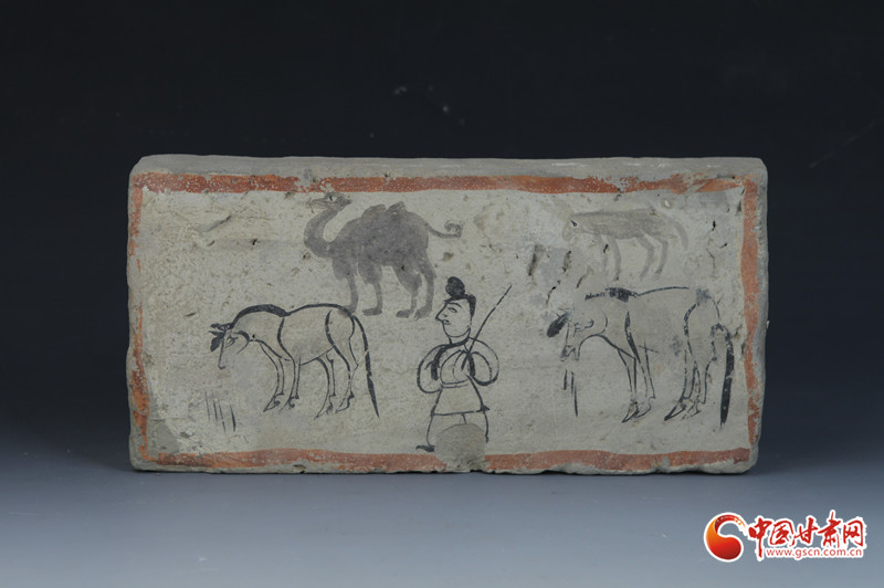 而在眾多璀璨的壁畫磚中,一件名為《牧馬、駱駝圖壁畫磚》的館藏一級文物,在美術界引發(fā)了強烈反響。這件壁畫磚現(xiàn)收藏于高臺縣博物館,畫面中央繪有一位身著交領短衫、緊腰束帶的牧人,他手執(zhí)長鞭,正在悠然放牧。草地上,馬群、駱駝、毛驢等牲畜或低頭覓食,或悠然自得。