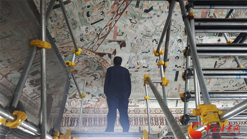 10月31日,由中央網(wǎng)信辦網(wǎng)絡(luò)傳播局、國家文物局政策法規(guī)司指導(dǎo),中國互聯(lián)網(wǎng)發(fā)展基金會特別支持,甘肅省委網(wǎng)信辦、省文物局主辦,張掖、嘉峪關(guān)、酒泉市委網(wǎng)信辦與敦煌研究院、中國甘肅網(wǎng)、鳳凰網(wǎng)甘肅頻道共同承辦的“何以中國|壁畫里的中國·當(dāng)AI遇見小飛天”網(wǎng)絡(luò)主題宣傳活動走進(jìn)敦煌研究院,采訪在莫高窟修壁畫的青年修復(fù)師唐青松。