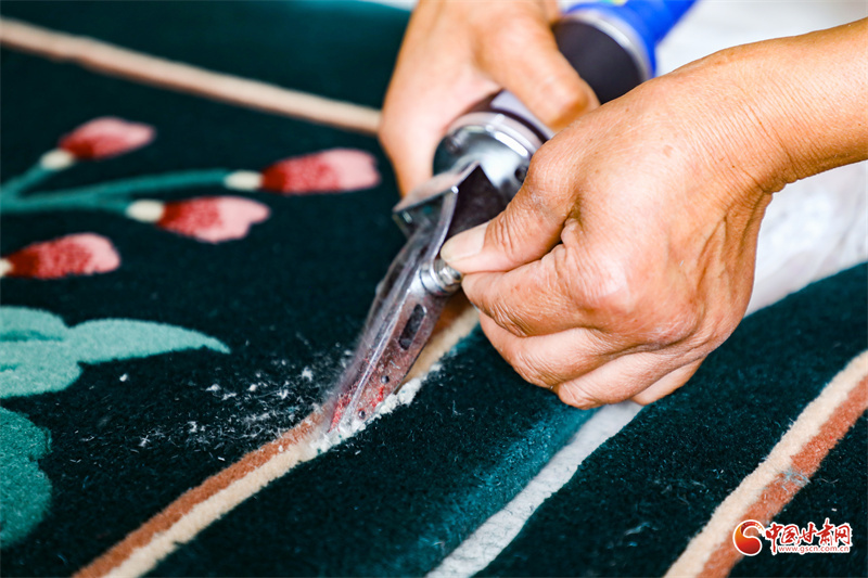 手工地毯,是環(huán)縣非物質(zhì)文化遺產(chǎn)之一,已有近半個(gè)世紀(jì)的傳承,慕粉萍從事這項(xiàng)技藝也有30多年了。