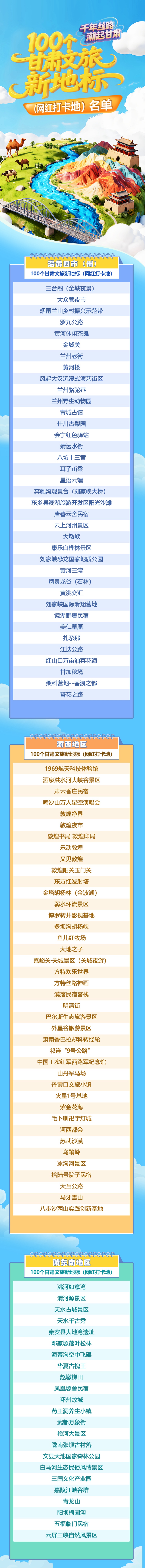 附:100個甘肅文旅新地標(網(wǎng)紅打卡地)名單‌