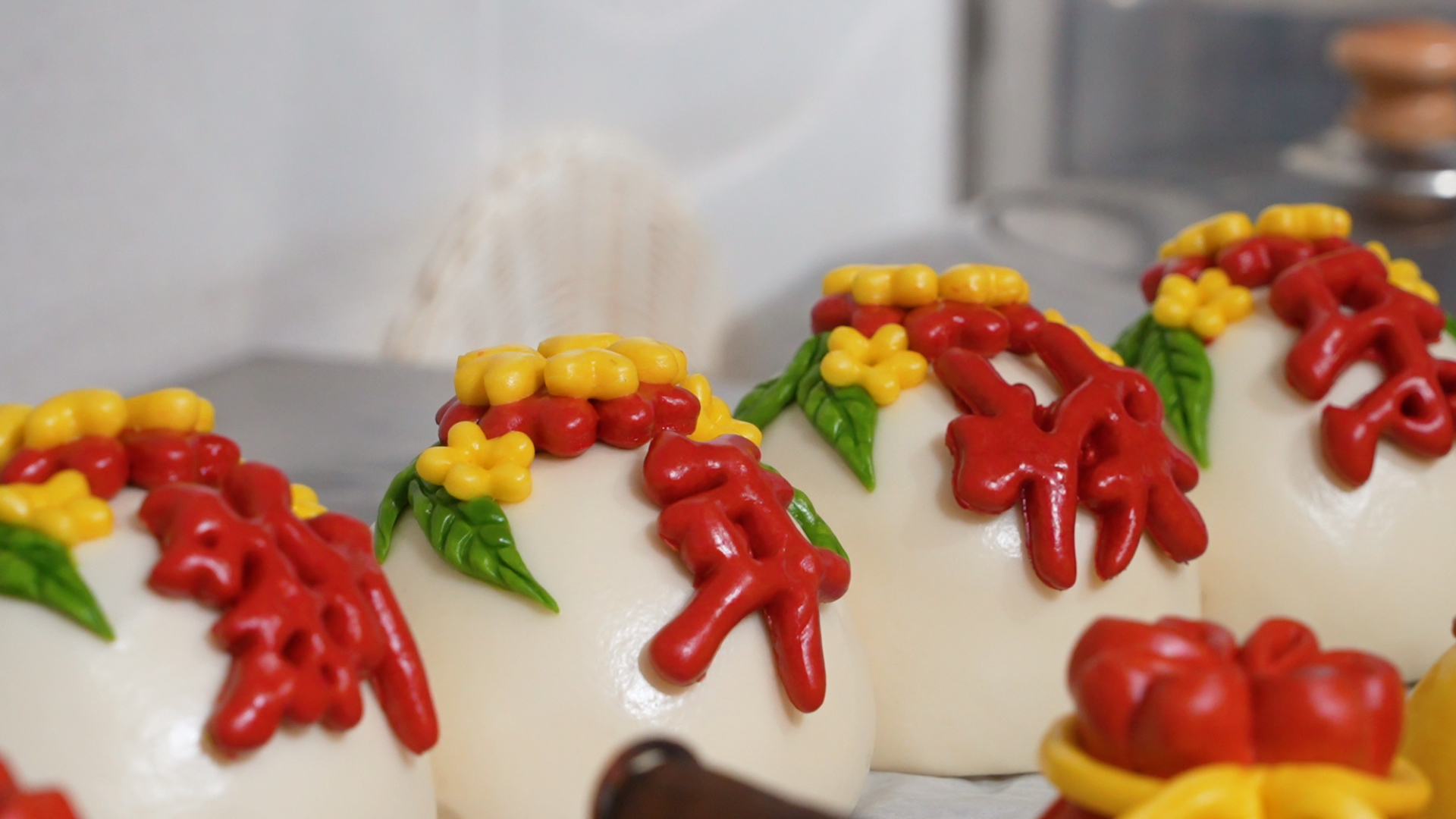 三年前,李艷艷偶然在網(wǎng)上看到花饃制作視頻,第一眼就被那鮮艷的色彩與生動的造型吸引。“當(dāng)時就覺得,這饃怎么這么好看!”李艷艷說,“我是個閑不住的人,有了念頭就想試試。”說做就做,她隨即遠赴山東學(xué)習(xí),將這份心動從興趣慢慢沉淀為事業(yè)。