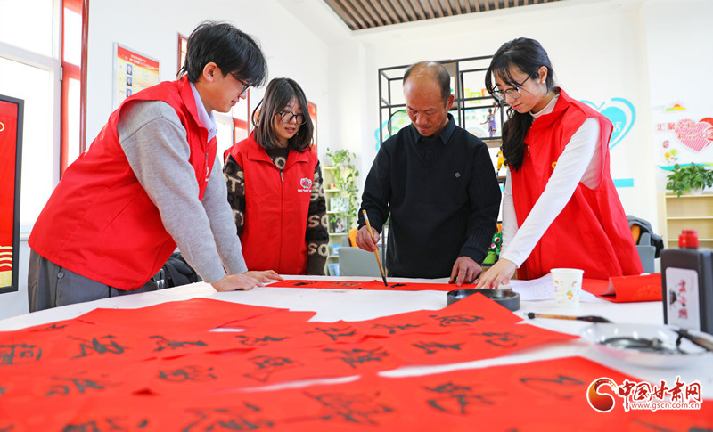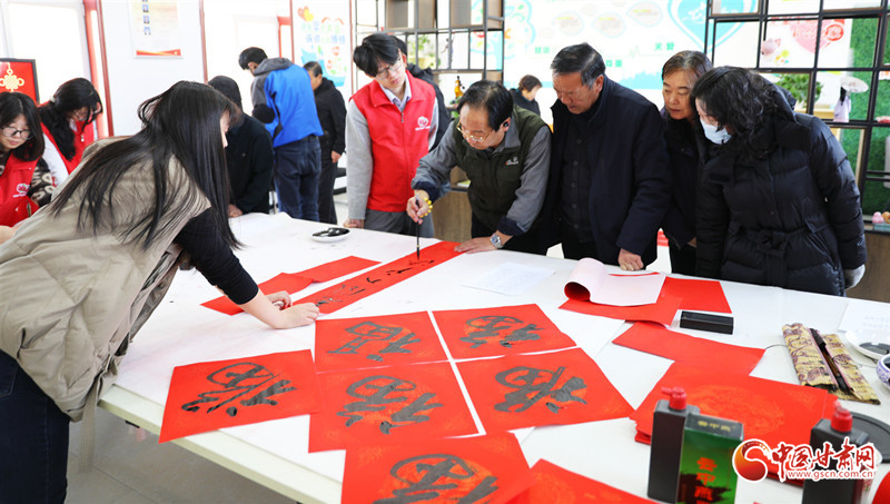 春節(jié)臨近,民樂縣組織群眾文化志愿者服務(wù)隊(duì)開展“翰墨迎春”公益文化活動(dòng),志愿者現(xiàn)場揮毫潑墨書寫春聯(lián),為群眾書寫春聯(lián)和“福”字,讓群眾在家門口享受“文化大餐”,迎接新春佳節(jié)的到來。