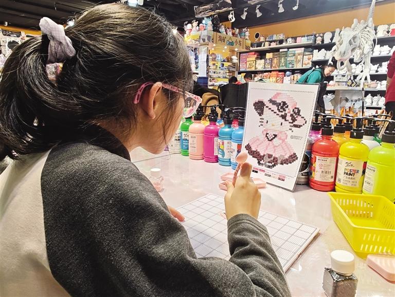 “我們主要做拼豆、銀飾DIY和陶藝,也有石膏彩繪、串珠、奶油膠這些項目,基本上當(dāng)下流行的手工都能體驗到。”店內(nèi)工作人員告訴記者,一站式、多樣化的體驗,更符合現(xiàn)在消費(fèi)者的需求,不用跑多家店,就能玩遍多種玩法。